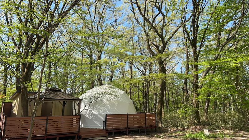 大自然に囲まれ、温泉とお食事を楽しむ、温泉リゾート・ドームテントグランピングホテル!
